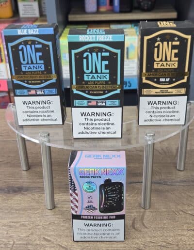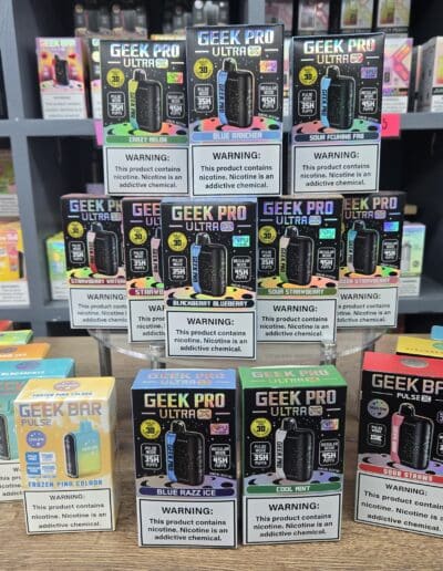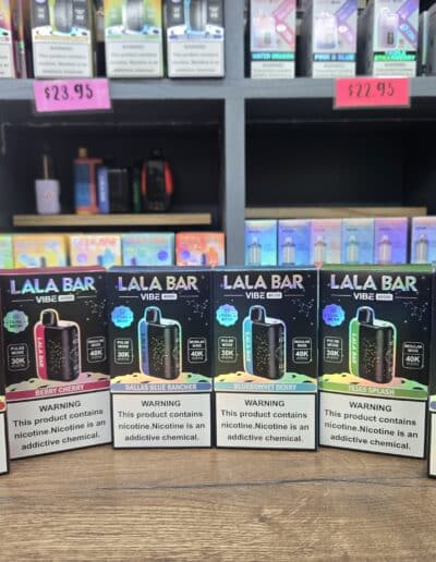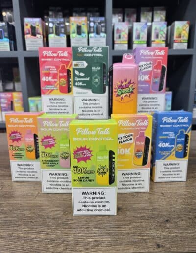 All of our Disposable Vapes are Texas Compliant. With brands like Geek Bar, What-A-Bar, I Joy, Lost Mary, LaLa Bars, Foger Refils and Pillow Talk, we have a HUGE selection.
